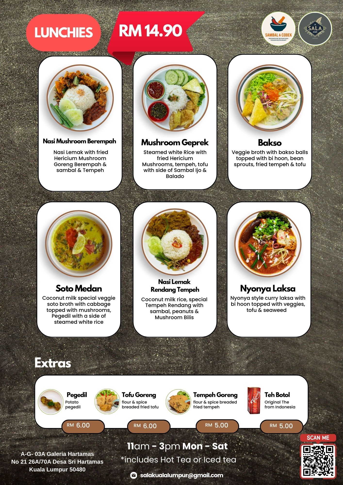 Since 2017, we've been serving up bold flavors and compassionate food. Visit our flagship in Desa Sri Hartamas or our kiosk at Avenue K in KLCC.